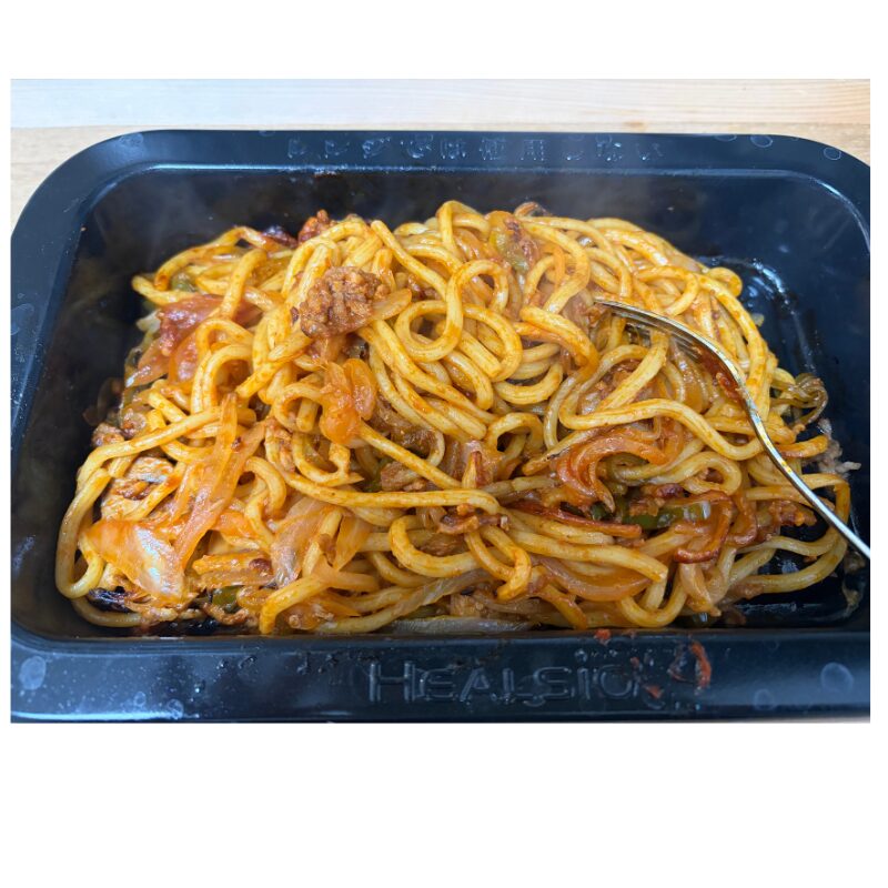普通はフライパンで作る日清Spa王 喫茶店のナポリタンですが、ヘルシオを使うと麺のプリプリ感が格段に変わります