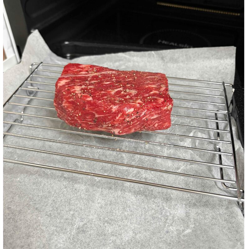 でも、ヘルシオの「まかせて調理(網焼き・揚げる)」を使えば、そんな心配は一切不要です。正直、ヘルシオを買ってから一番感動したのが、このローストビーフかもしれません