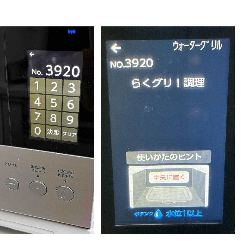 ヘルシオの便利な機能に「らくグリ!調理」がありますが、これを一瞬で呼び出すコツがあります。 それが、メニュー番号入力で「3920」と打つこと